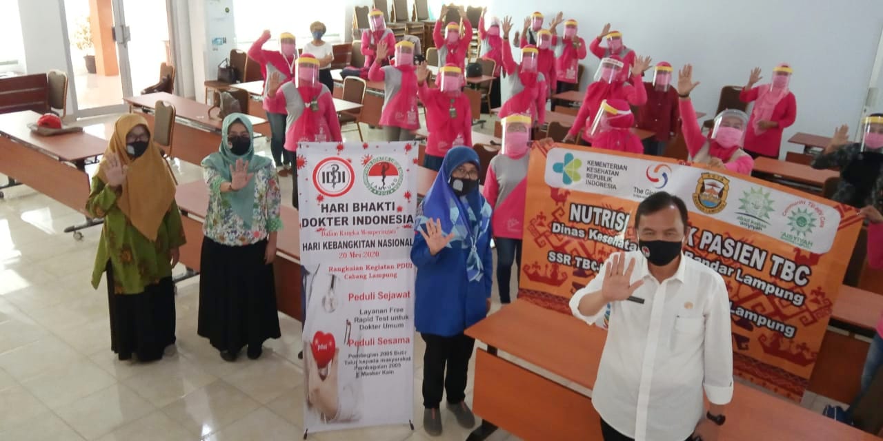 Kepala Dinas Kesehatan Kota Bandar Lampung, sekaligus sebagai Ketua PDUI Cabang Lampung ( dr.Edwin Rusli.,MKM). Dalam rangka Hari Bakti Dokter Indonesia ke - 112 Melaksanakan kegiatan Peduli Sesama Berkerjasama denganKB SSR Aisyiyah Cabang Bandar Lampung membagikan 2005 butir Telur dan Masker kain untuk penderita TBC di Kota Bandar Lampung.